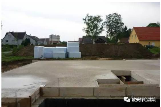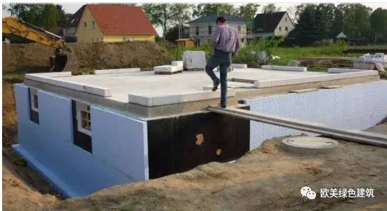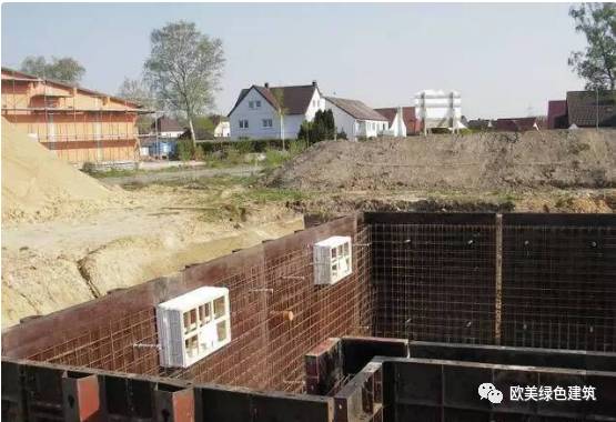 ▼地下室黑色防水層的外部,用白色的EPS聚苯乙烯泡沫保溫板進(jìn)行粘貼: