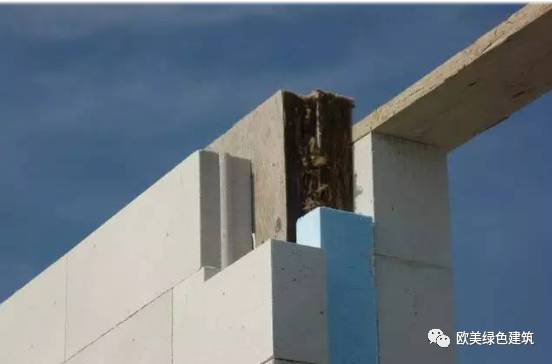 外側(cè)較薄的蒸壓加氣混凝土墻體,為非承重墻,僅起圍護(hù)的作用;中間空腔,填充玻璃纖維氈毯保溫材料;里側(cè)較厚的蒸壓加氣混凝土墻體,為承重墻,起主要承重作用。雙層結(jié)構(gòu)中間夾芯層保溫墻體,在門窗洞口位置,使用淺藍(lán)色的擠塑PXS聚苯乙烯泡沫保溫板,以及使用雪青色的防水效果較好的擠塑PXS聚苯乙烯泡沫保溫板,進(jìn)行保溫氈毯材料的外端封堵。