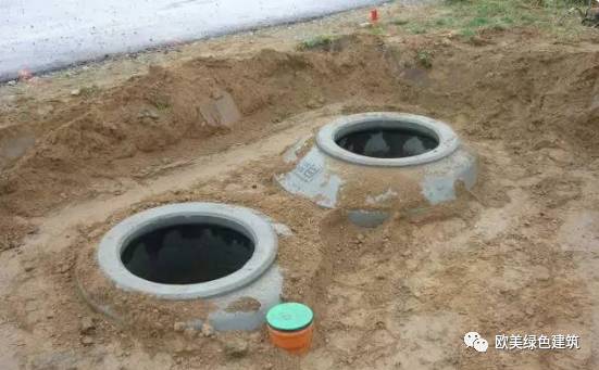 ▼地基附近場(chǎng)地上預(yù)制的鋼筋混凝土雨水井: