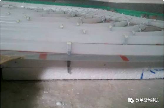 ▼從一側(cè)看,地暖地面,最低部為較厚的EPS聚苯乙烯泡沫保溫板: