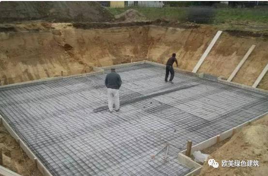 ▼完成后,在板式基礎(chǔ)上組立鋼模板,綁扎鋼筋網(wǎng),準(zhǔn)備灌注地下室墻體: