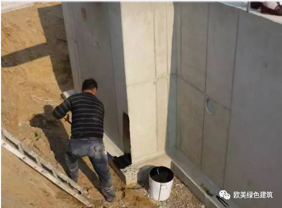 ▼地下室墻體外側(cè)涂刷液體瀝青防水層: