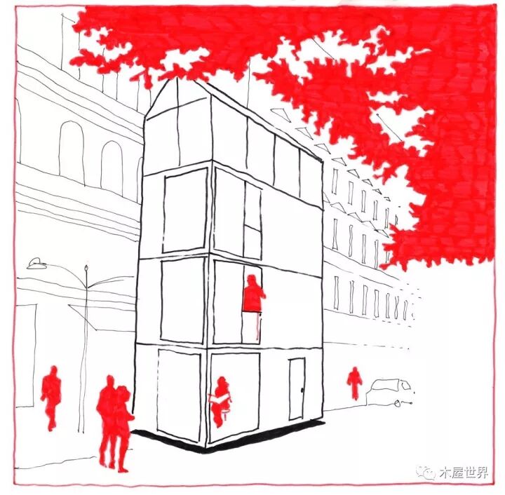 Tikku 是一個(gè)僅有一個(gè)停車車位,2.5 x 5m的微型公寓。它是由CLT交叉疊層木材所搭建的空間模塊組裝而成。它可以一夜之間被建造完成。無(wú)論你的車開到哪里,它都可以快速地長(zhǎng)起來(lái)。