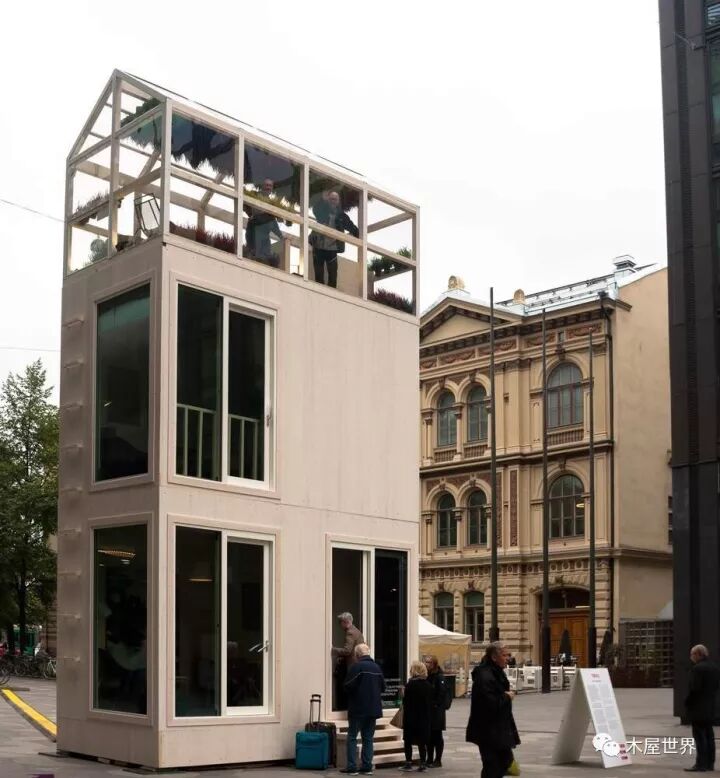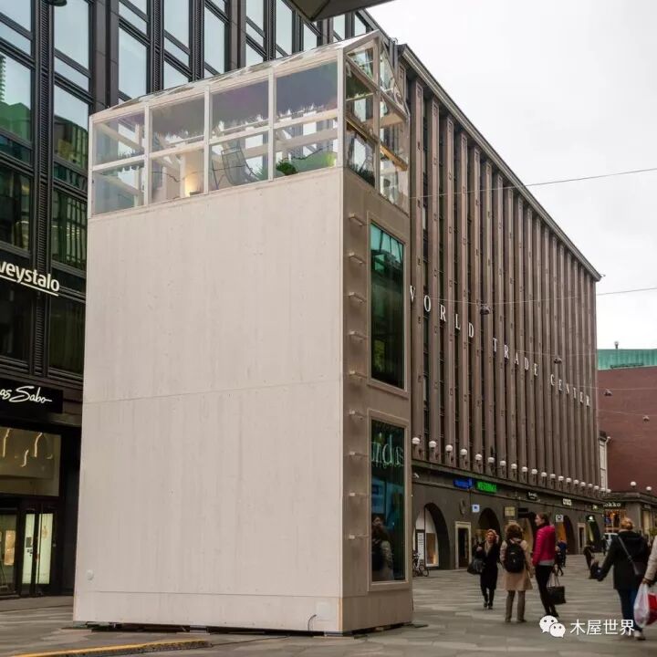 CLT比鋼筋混凝土輕5倍。對(duì)于正常的街道而言,Tikku不需要任何地基就可以輕易地站在街上了。當(dāng)然,底部有一個(gè)砂箱來(lái)平衡建筑本身。10cm的CLT已經(jīng)足夠作為支撐結(jié)構(gòu),而多余的20cm的CLT是用來(lái)作保溫的。這樣就可以省去其他絕緣材料了。