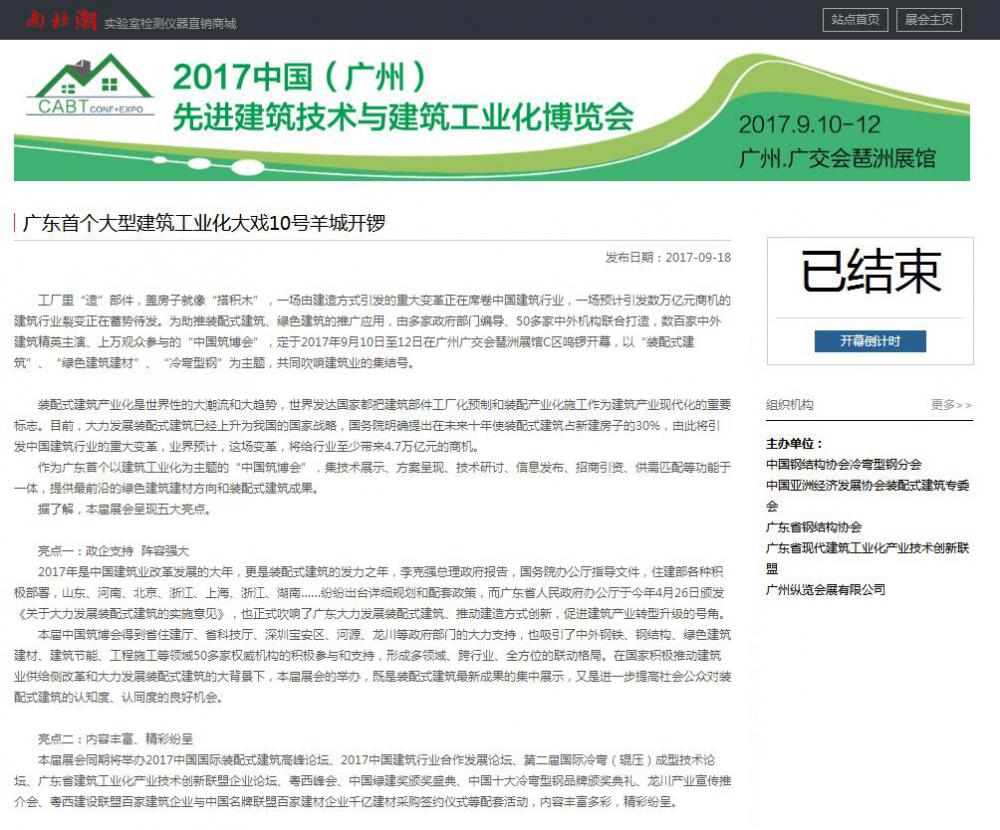 中國自動化網(wǎng)發(fā)布有關(guān)2017中國筑博會·廣州開幕式的報道 (2017-10-30)