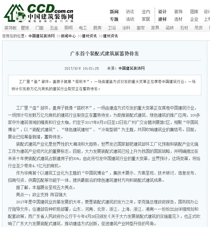 中國鋼結(jié)構(gòu)資訊網(wǎng)發(fā)布有關(guān)2017中國筑博會·廣州開幕式的報道 (2017-10-30)
