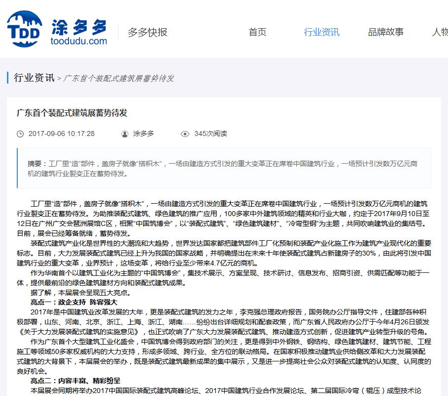 招商寶網發(fā)布有關2017中國筑博會·廣州開幕式的報道 (2017-10-30)