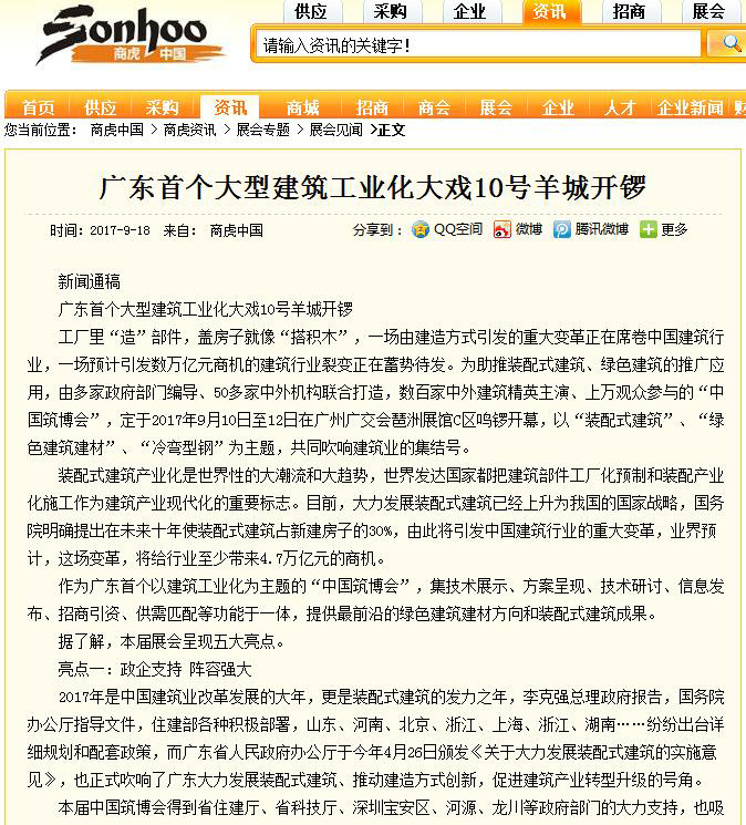 招商寶網(wǎng)發(fā)布有關(guān)2017中國筑博會·廣州開幕式的報道 (2017-10-30)