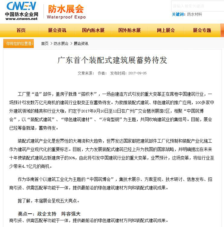 國際節(jié)能環(huán)保網(wǎng)發(fā)布有關(guān)2017中國筑博會(huì)·廣州開幕式的報(bào)道 (2017-10-30)
