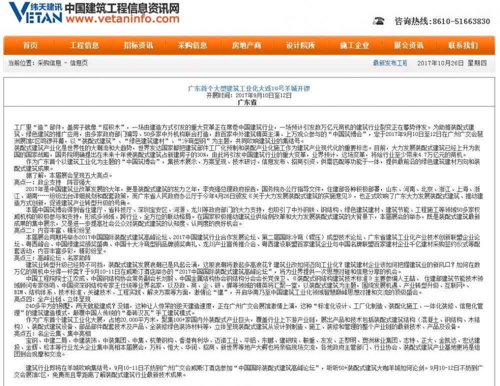中國招標采購導(dǎo)航網(wǎng)發(fā)布有關(guān)2017中國筑博會·廣州開幕式的報道 (2017-10-30)