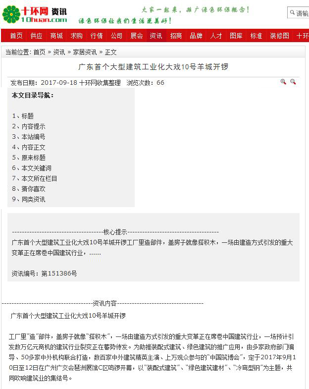 國際節(jié)能環(huán)保網(wǎng)發(fā)布有關(guān)2017中國筑博會·廣州開幕式的報道 (2017-10-30)