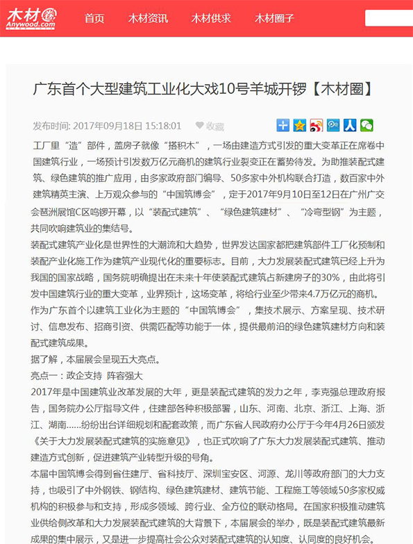 中國木材網(wǎng)發(fā)布有關(guān)2017中國筑博會(huì)·廣州開幕式的報(bào)道 (2017-10-30)
