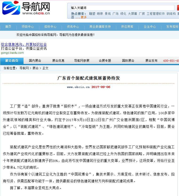 建設(shè)行業(yè)信息網(wǎng)發(fā)布有關(guān)2017中國(guó)筑博會(huì)·廣州開(kāi)幕式的報(bào)道 (2017-10-30)