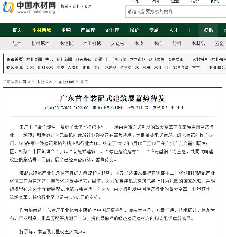 中國木業(yè)資源網(wǎng)發(fā)布有關(guān)2017中國筑博會·廣州開幕式的報道 (2017-10-30)