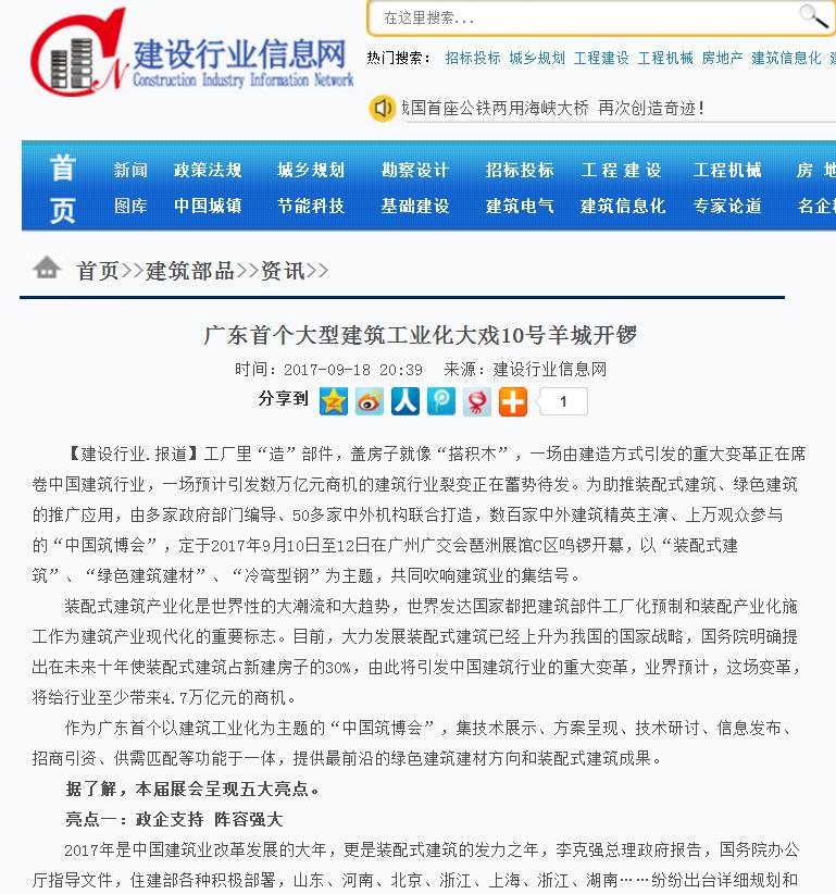 筑龍網(wǎng)發(fā)布有關(guān)2017中國(guó)筑博會(huì)·廣州開(kāi)幕式的報(bào)道 (2017-10-30)