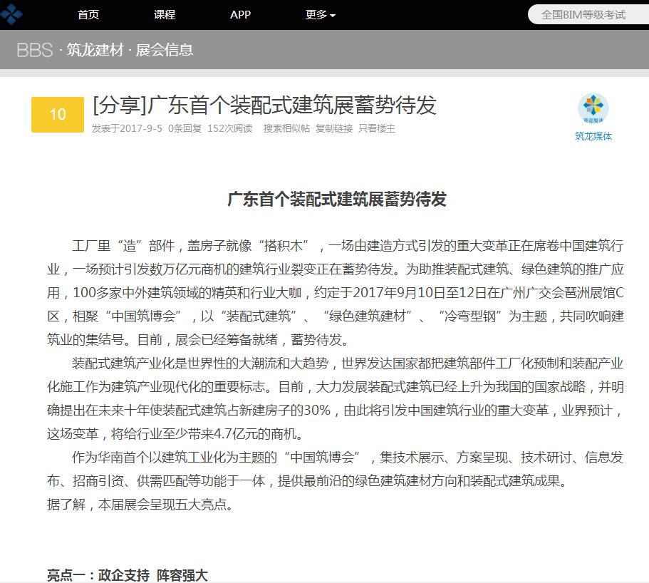 綠建之窗網(wǎng)發(fā)布有關(guān)2017中國(guó)筑博會(huì)·廣州開幕式的報(bào)道 (2017-10-30)