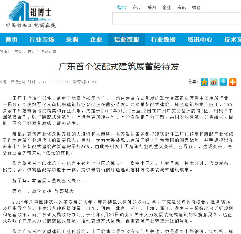 綠建之窗網(wǎng)發(fā)布有關(guān)2017中國(guó)筑博會(huì)·廣州開(kāi)幕式的報(bào)道 (2017-10-30)