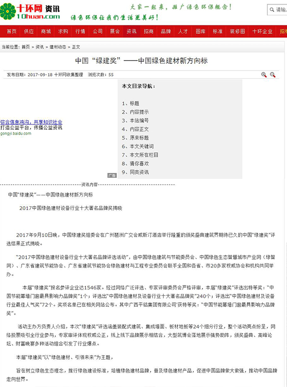 鋁博士網(wǎng)發(fā)布有關(guān)2017中國綠色建材設(shè)備行業(yè)十大著名品牌獎的報道 (2017-10-31)