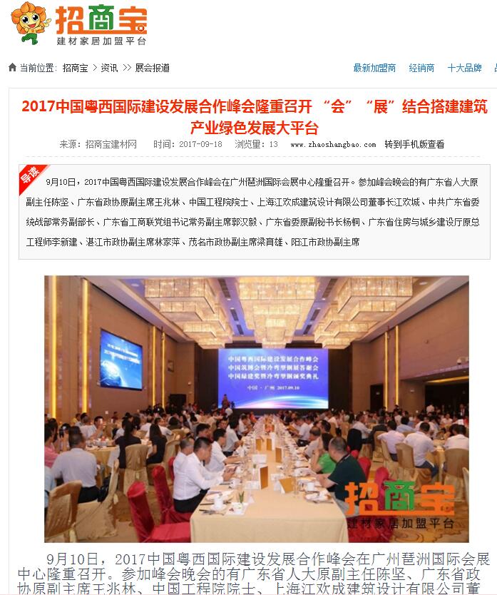 中國建筑工程信息資訊網(wǎng)發(fā)布有關(guān)2017中國粵西國際建設(shè)發(fā)展合作峰會的報(bào)道 (2017-10-31)