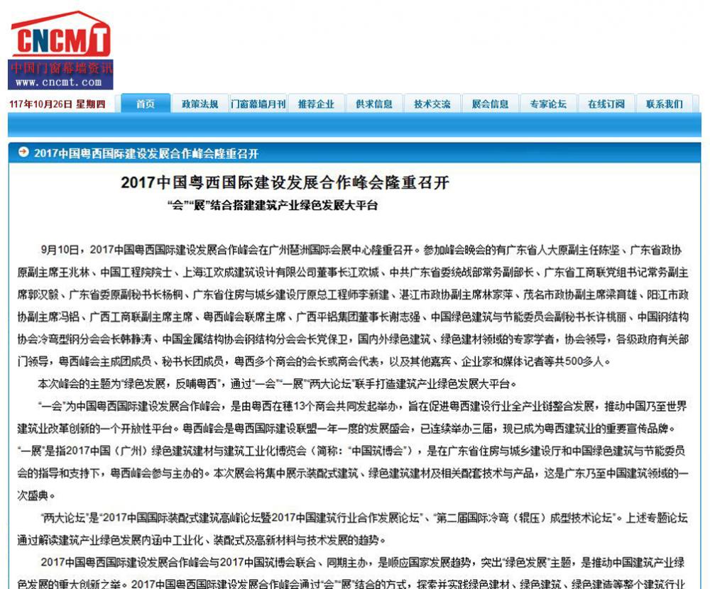 中華整木網(wǎng)發(fā)布有關(guān)2017中國(guó)粵西國(guó)際建設(shè)發(fā)展合作峰會(huì)的報(bào)道 (2017-10-31)