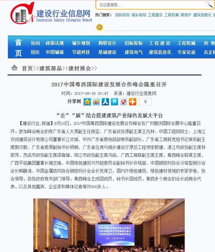 中國門窗幕墻資訊網(wǎng)發(fā)布有關2017中國粵西國際建設發(fā)展合作峰會的報道 (2017-10-31)