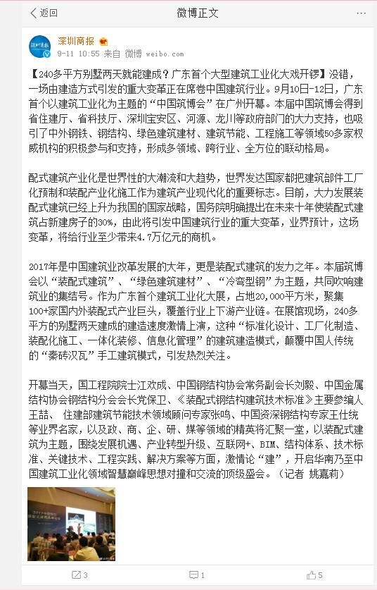 深圳特區(qū)報發(fā)布有關(guān)2017中國筑博會·廣州的報道 (2017-11-01)