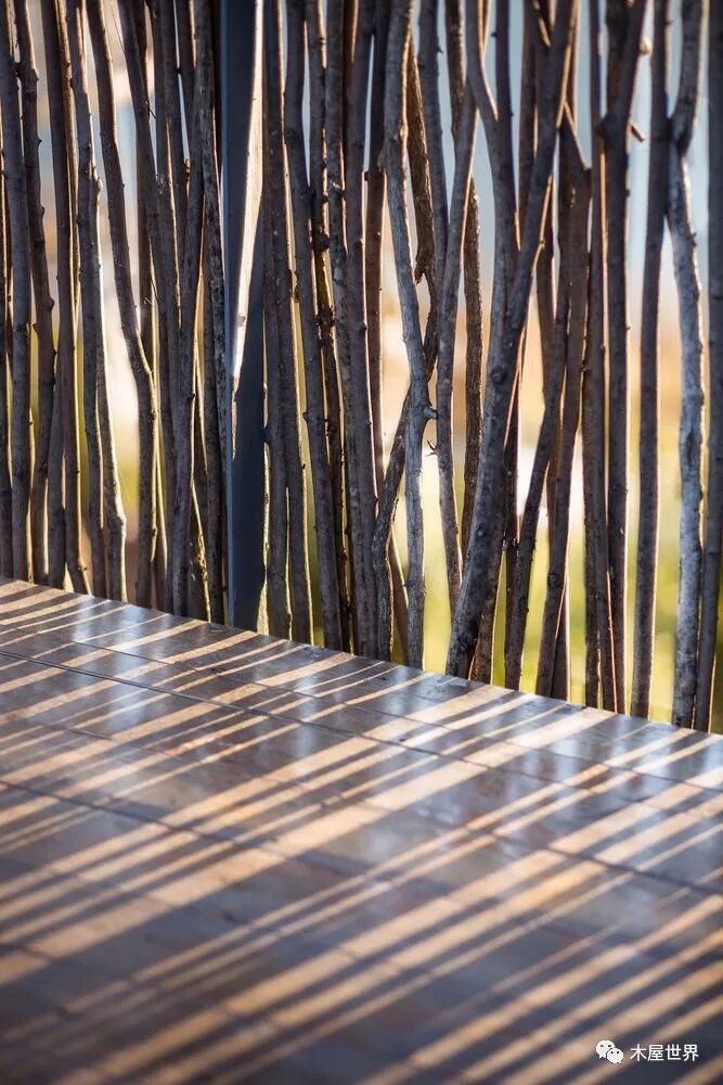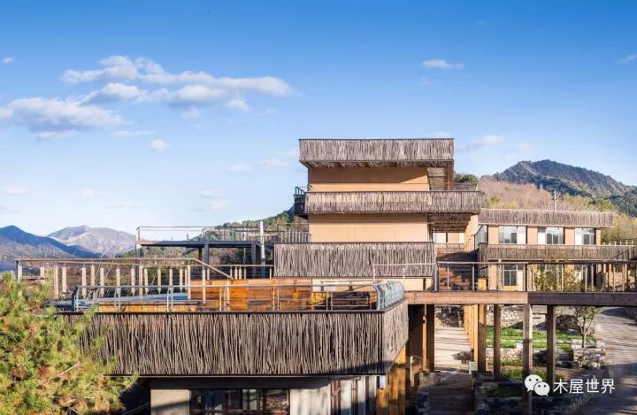 在改造中的材料應(yīng)用上,袈藍(lán)建筑采用了就地取材的方式,應(yīng)用當(dāng)?shù)氐牟窈?、卵石及木材,因地制宜地將野奢定位融入視覺當(dāng)中。酒店外立面以環(huán)繞著建筑露臺垂直排列的柴木為特色,強化了“野”的風(fēng)情,卵石壘起一道道樸拙自然的圍墻,木材作為主材與景觀一同描繪出充滿古韻的山水畫作。在鄒迎晞看來,就地取材不僅是為了節(jié)約成本,而且體現(xiàn)了建筑與環(huán)境的“基因匹配”。“建筑沒有好與壞,只有適合與不適合”,溪園酒店是適合這個場地而“生長”下來的建筑,會隨之存在,也隨之毀滅。