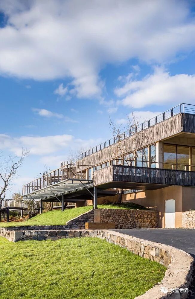 目前酒店共設(shè)有25間客房,設(shè)計體現(xiàn)對老建筑的延續(xù)。其中一棟嵌在西邊的山