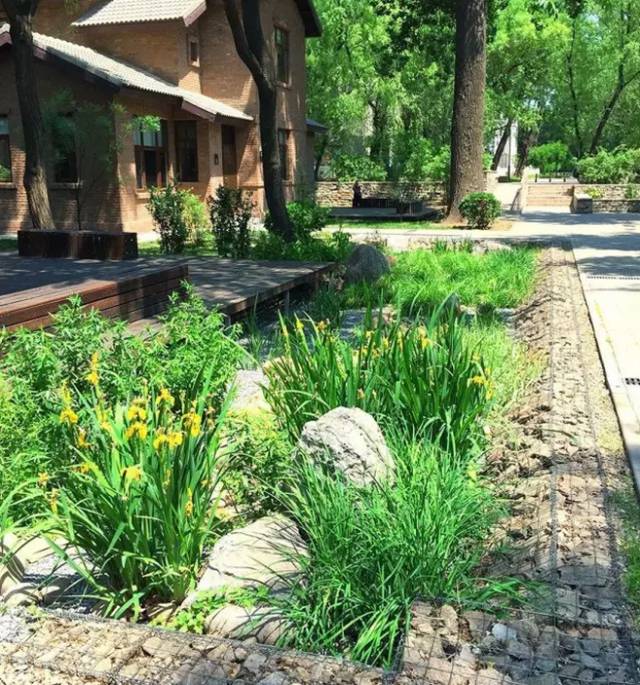 雨水花園是自然形成的或人工挖掘的淺凹綠地,被用于匯聚并吸收來自屋頂或地面的雨水,通過植物、沙土的綜合作用使雨水得到凈化,并使之逐漸滲入土壤,涵養(yǎng)地下水,或使之補給景觀用水、廁所用水等城市用水。是一種生態(tài)可持續(xù)的雨洪控制與雨水利用設施。