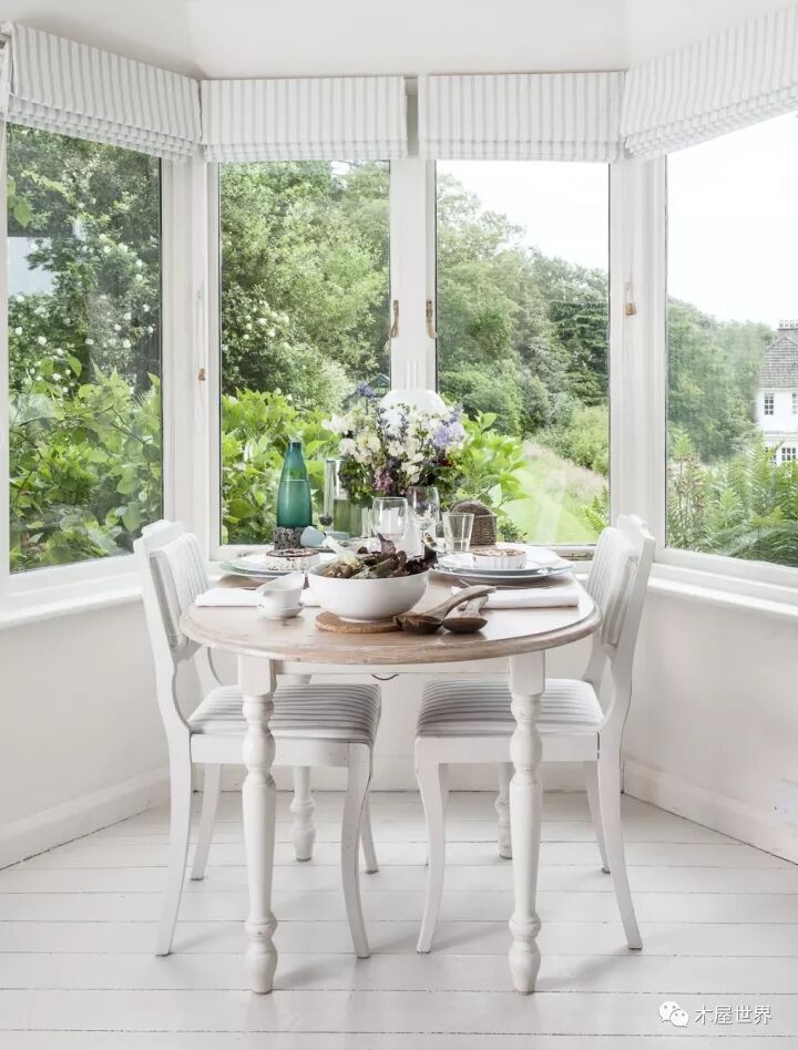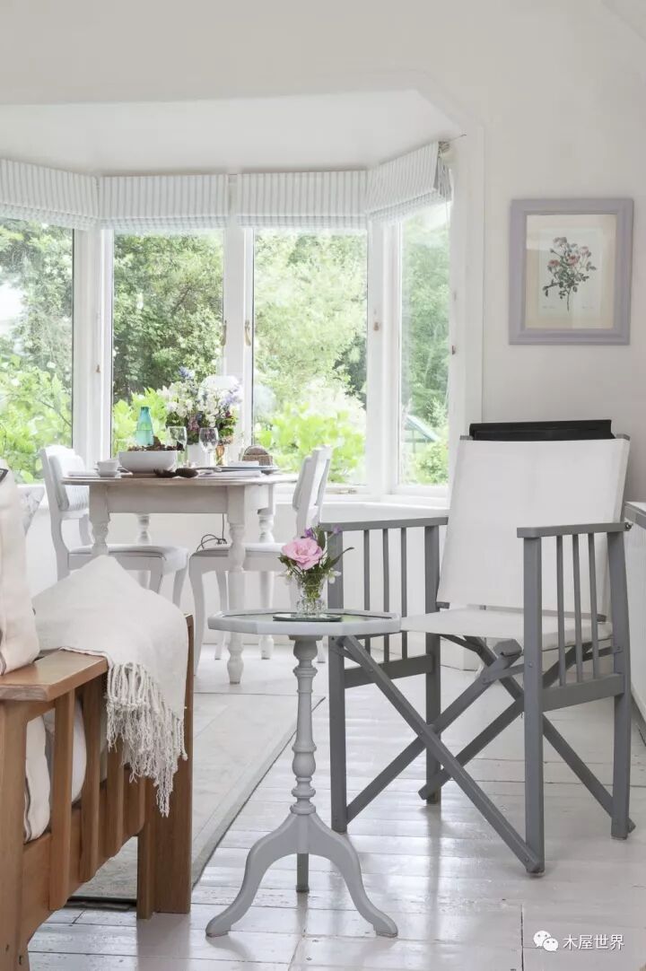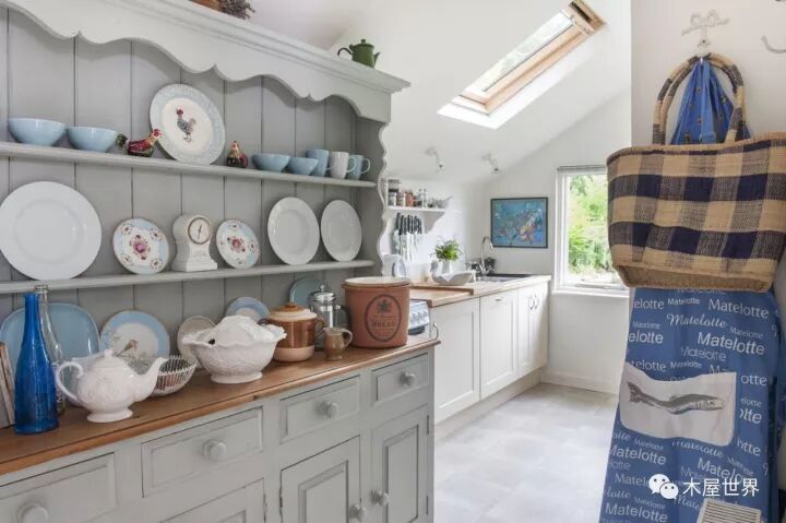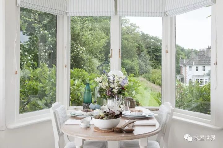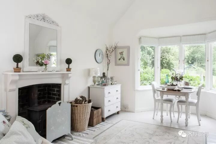開放式壁爐和木材燃燒爐邊有一個(gè)很大的柳條筐,裝滿劈材 - 非常優(yōu)雅,小屋充滿自然的溫暖,使它真正成為四季寓所。條紋窗簾是 Laura Ashley 織物,由帕特麗夏制作。她說:“我以前從來沒有做過百葉窗,但學(xué)過的數(shù)學(xué)確實(shí)奏效了。”“我欣喜若狂。”