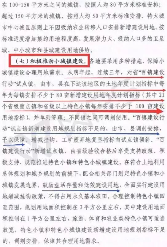 根據(jù)《意見》,“百鎮(zhèn)建設(shè)行動(dòng)”試點(diǎn)鎮(zhèn)新增建設(shè)用地規(guī)劃指標(biāo)不足的,由市、縣調(diào)劑安排,予以保障;增減掛鉤、工礦廢棄地復(fù)墾指標(biāo)向試點(diǎn)鎮(zhèn)傾斜。