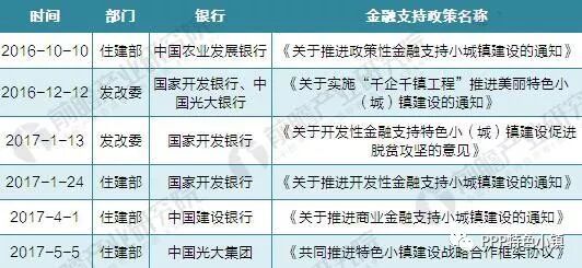截至目前,國家發(fā)展改革委與住建部聯(lián)合農(nóng)發(fā)行、國開行、光大銀行、建設(shè)銀行等銀行先后提出了多個支持特色小鎮(zhèn)建設(shè)的金融政策文件。