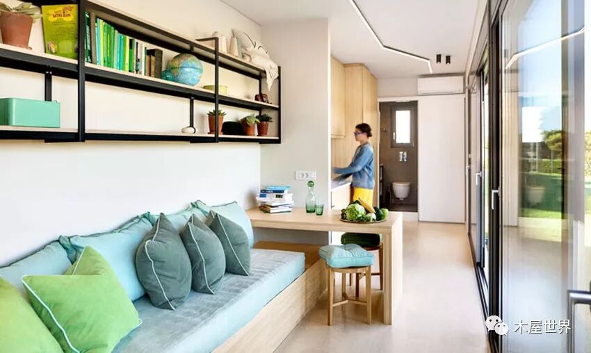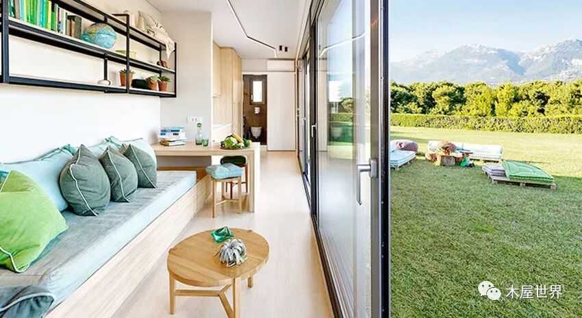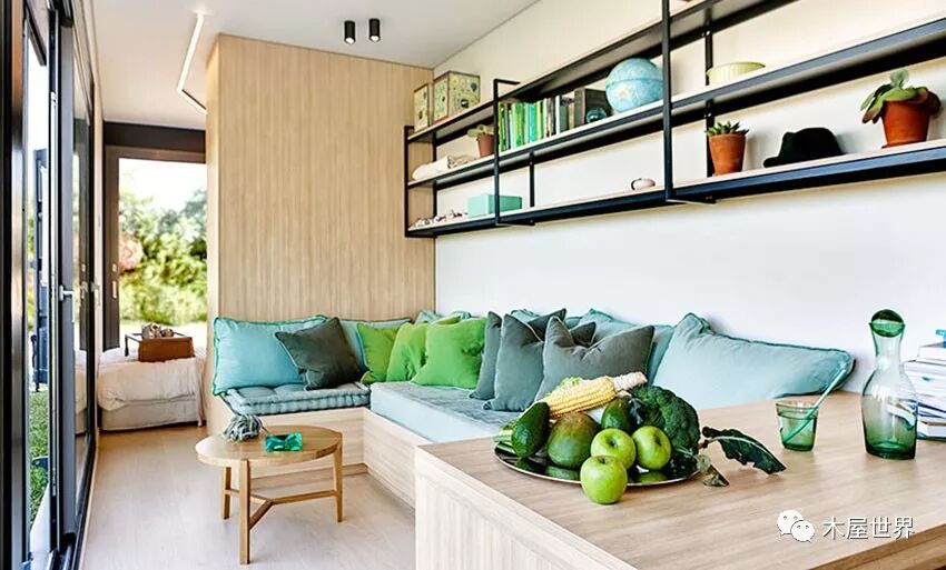 Cocoon Modules 構(gòu)筑之住宅貨柜屋除了外觀出眾,其他方面同樣使人贊嘆,比如制造成本比傳統(tǒng)建筑少了30%、全屋又可在一至四個月內(nèi)完工,且有能源認(rèn)證和抗震效果保證,快速之余品質(zhì)也兼顧。另外,公私區(qū)域都添加落地窗,各區(qū)域善用外界連結(jié)性,將周邊景色延伸到屋內(nèi),欣賞比電視更好的萬物風(fēng)光!通過Coco-mat 自然材質(zhì)、有機家具搭接藍綠色系軟裝、個性鐵件吊柜,室內(nèi)木質(zhì)、戶外田園美學(xué)整合之下,將沙發(fā)、軟墊移動到草地上,享受五感真正與大自然比鄰,不管作為自宅或度假小屋,都是一個讓我們重新思考居所的方式。