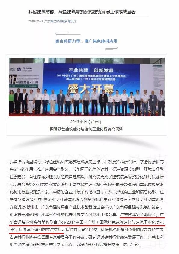 2017年底,廣東省住建廳組織開(kāi)展了全省建筑節(jié)能、綠色建筑與裝配式建筑發(fā)展工作情況督查,對(duì)各地取得的明顯成效給予肯定,“中國(guó)筑博會(huì)·廣州”的積極促進(jìn)作用也得到了省住建廳的肯定。