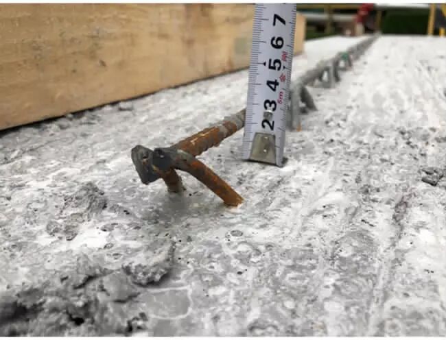 目前裝配式混凝土工程大量采用疊合板,應(yīng)用時需注意桁架上弦筋與混凝土面之間的凈空應(yīng)保證方便穿過線管,因構(gòu)件廠對混凝土流動性要求不高,所以在模臺上振搗時多余的混凝土不易泄出,造成混凝土板厚超過設(shè)計值( 圖 11) 。