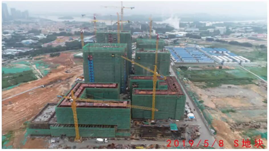 采用由設(shè)計牽頭的EPC管理模式,設(shè)計施工并行,這在本項目推進(jìn)速度方面體現(xiàn)出明顯的效果,8棟裝配式建筑工期也沒有滯后。圖15為航拍宿舍地塊施工場景,4棟采用裝配式技術(shù)的塔樓標(biāo)準(zhǔn)層建筑面積約800-1200㎡。從2018年12月底地下室頂板完成后,裝配速度越來越快,最后達(dá)到4.5d/層,于 2019年4月16日結(jié)構(gòu)封頂。