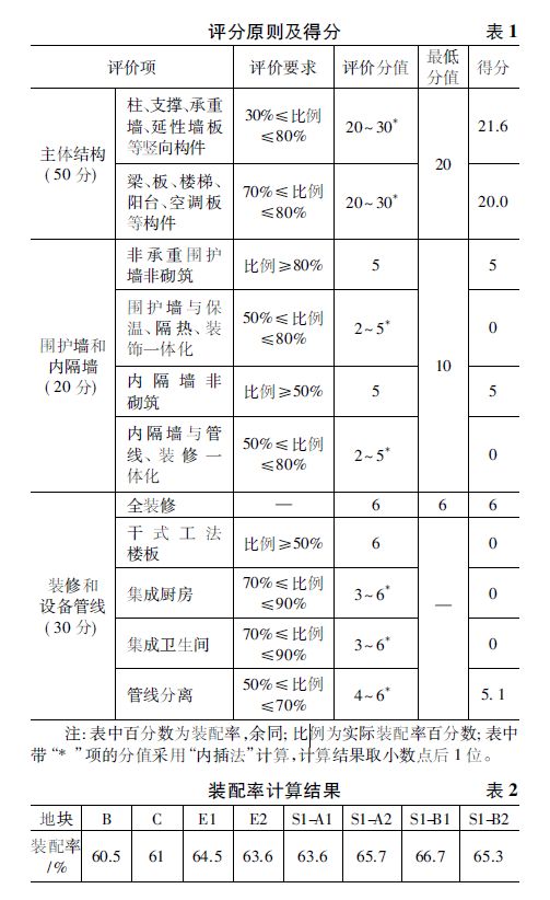 在 BIM 模型的協(xié)助下計算裝配率,根據(jù)《裝配式建筑評價標(biāo)準(zhǔn)》(GB/T51129—2017),本項目采用裝配式技術(shù)的8棟塔樓的裝配率均達(dá)到A級評價標(biāo)準(zhǔn)( 表1,2)。