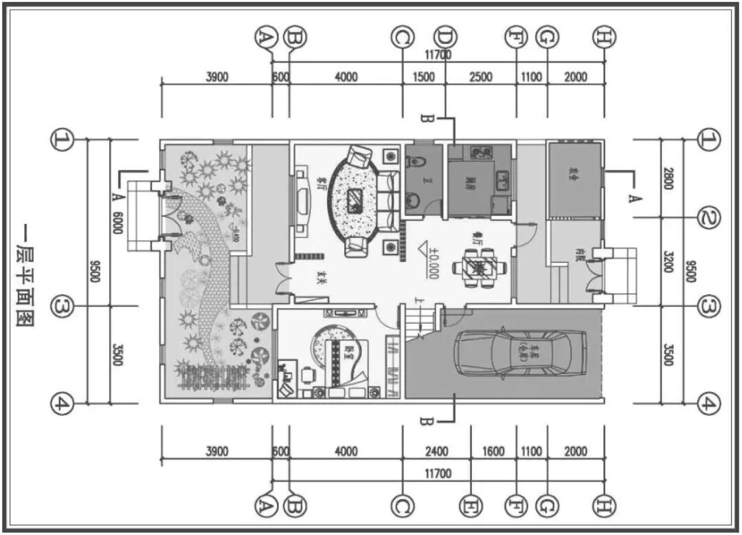本文以河北邯鄲市某套裝配式住宅作為主要研究對象,該棟住宅的宅基地面積為148.2平方米,建筑面積249.2平方米,結(jié)構(gòu)形式完全采用預(yù)制裝配式鋼筋混凝土結(jié)構(gòu),施工方式采用預(yù)制構(gòu)件工廠流水生產(chǎn),現(xiàn)場組裝的方式,建筑高度10.95米,開間11.7米,進(jìn)深9.5米,生產(chǎn)安裝工期為一個月。項(xiàng)目一層平面圖見圖1。