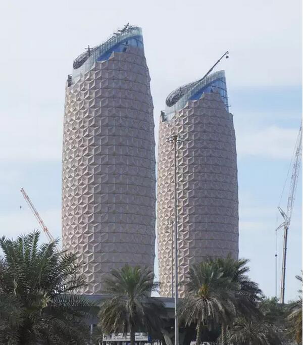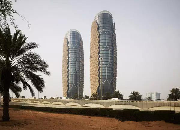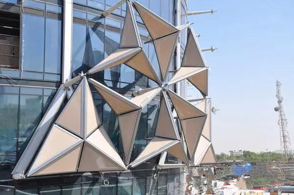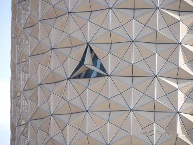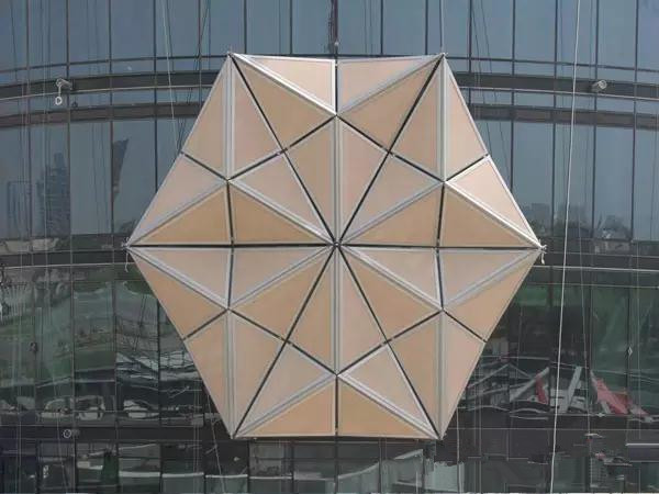 ADIC工程的Mashrabiya智能遮陽系統(tǒng),顛覆了傳統(tǒng)的遮陽形式。將機(jī)電與幕墻有機(jī)地結(jié)合在一起,使幕墻有了一個新的設(shè)計(jì)思維。當(dāng)建筑幕墻遭受陽光直射時,Mashrabiya呈張開狀態(tài),從而為建筑提供遮陽。隨著太陽沿樓體的移動, Mashrabiya 可隨時間逐漸呈現(xiàn)張開或關(guān)閉狀態(tài),從而實(shí)現(xiàn)根據(jù)外部環(huán)境的變化對大樓的內(nèi)部溫度、光線進(jìn)行智能調(diào)節(jié)。