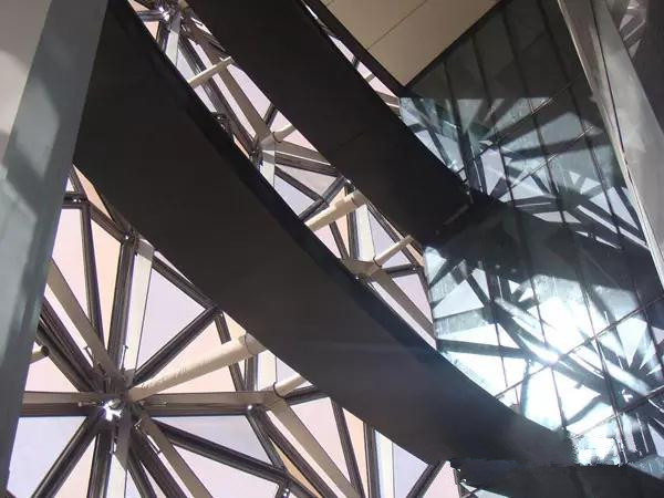 IV) 遮陽對建筑外觀的作用。一般人都認(rèn)為玻璃幕墻設(shè)計(jì)只能平板化,無法設(shè)計(jì)外遮陽等遮陽設(shè)施,但是由國外的許多案例我們可以發(fā)現(xiàn)金屬玻璃幕墻能以輕巧的金屬板設(shè)計(jì)成優(yōu)美的遮陽形式并成為建筑造型有趣的一部份。遮陽系統(tǒng)在玻璃幕墻外觀的玻璃墻體上形成光影效果,體現(xiàn)出現(xiàn)代建筑藝術(shù)美學(xué)效果。因此,在歐洲建筑界,已經(jīng)把外遮陽系統(tǒng)作為一種活躍的立面元素,加以利用,甚至稱之為雙層立面形式。