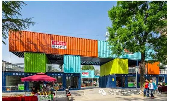 這是一個蠻有意思的集裝箱商業(yè)街,位于陜西袁家村。設計師利用52個創(chuàng)意集裝箱搭建了一條特色商業(yè)街,內(nèi)有萬國生活館,日韓生活館,東南亞美食等多個商鋪,吃喝玩樂一應俱全。可以看出,這里的集裝箱被涂成橙色、綠色、黃色、藍色等清新艷麗的色彩,讓整體風格更加多元化。